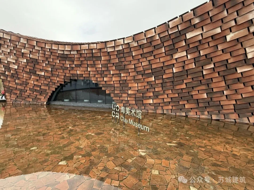 當(dāng)天上午,我們?nèi)缂s抵達(dá)陶二廠。這座始建于1958年的老廠房,曾是宜興紫砂產(chǎn)業(yè)的中流砥柱,如今在改造后煥發(fā)出新的生機(jī)。當(dāng)看到日本建筑大師隈研吾設(shè)計(jì)的 UCCA 陶美術(shù)館時(shí),家人們紛紛駐足驚嘆 —— 陶土打造的外立面在陽光下呈現(xiàn)出 “窯變色彩”,仿佛將紫砂的千年工藝凝固成了建筑藝術(shù)。